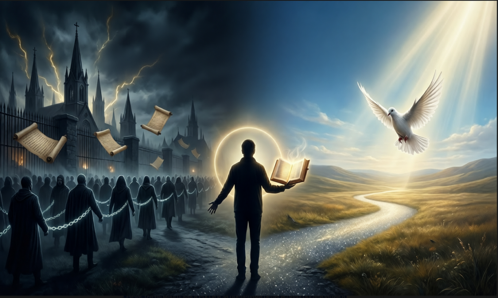 Да, человек можешь ошибиться. Но лучше «ошибиться в свободе», чем жить в ложной праведности или самоправедности в рабстве греха. Потому что даже человеческие ошибки — в руках Бога — становится путём к покаянию, смирению и духовной глубине.